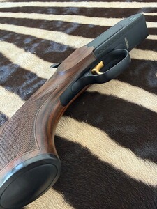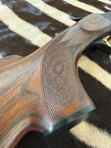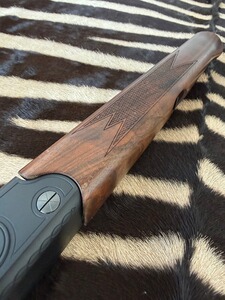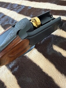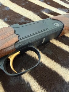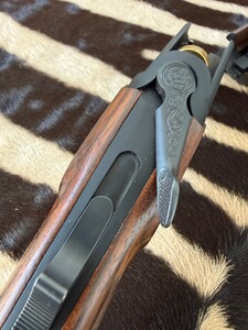 SYSTEM: Kipplaufbüchse / Einschloss-System mit Jäger-Kippblock-Verschluss und separater Handspannung. Der Kippblock und das Abzugszüngel sind goldfarben titannitriert und schaffen so einen schönen Kontrast zum schwarzen System. Der Kippblockverschluss ist äußerst stabil gearbeitet und kann so auch höchste Gasdrücke ohne Schwierigkeiten verarbeiten. Der Abzug ist auf individuellste Vorlieben einstellbar und bricht dabei immer glasklar. Verstellbarer Feinabzug (3 Stufen einstellbar auf ca. 400 g / ca. 600 g / ca. 800 g).