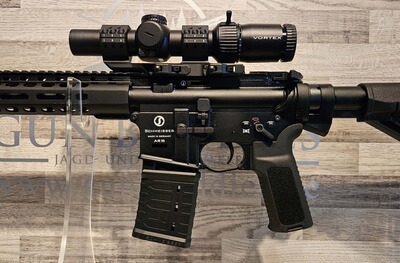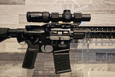 im Set einsatzfertig montiert mit einem Zielfernrohr Vortex Strike Eagle 1-8x24 Absehen AR-BDC3 MOA SFP beleuchtet, auf Schmeisser SM30 Montage