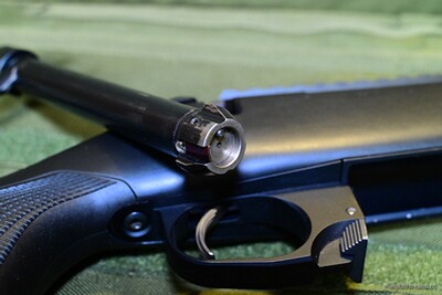 Gebrauchspuren: nahe der Mündung leichte Abnutzung durch den Schalldämpfer, Magazinschacht Spuren durch das Einlegen des Magazins, wenige Spuren am Handschutz