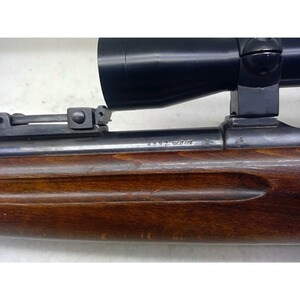 Einzelladerrepetierbüchse Kriegeskorte in .22lr. Lauflänge 60cm, Gesamtlänge ca. 108cm, Schaftlänge ca. 35cm. Holzschaft, ZF Tasco 4x32.
