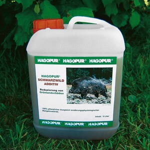 Um Schwarzwildschäden vor allem auf landwirtschaftlichen Grünflächen zu vermeiden, wird der Bedarf des Wildes an Vitamin B12 sowie an essentiellen Aminosäuren durch das Wildschwein-Additiv gedeckt. Die Flüssigkeit auf rein biologischer Basis wird auf das Kirrgut gespritzt und damit vermengt – ca. 25 ml pro Liter Kirrmasse. Die Tiere nehmen den Zusatz mit dem Kirrmaterial auf und decken so ihren Bedarf. Mit Erfolg getestet – Reduzierung der Schäden um bis zu 80%. 5-Liter-Kanister.