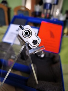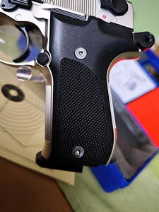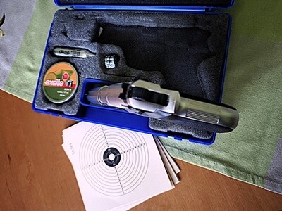 Die Pistole im Kaliber von 4,5 mm (.177) Diabolo ist technisch und optisch in sehr gutem Zustand. Die Griffschalen wurden mit Edelstahtschrauben aufgewertet.