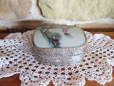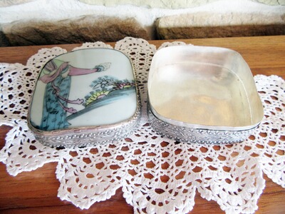 Silber Shard Box Scherbendose Asien China Antik Vintage Porzellan