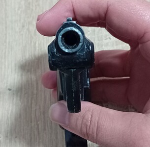 Die Laufsperre liegt tief im Laufinneren und ist so nur leicht zu sehen (fast scharfe Optik). Mir bekannte Stahlteile sind der Schlagbolzen, das Abzugsgestänge und der Innenlauf mit Sperre. Ich habe sie zum Test geschossen und sie funktioniert. Ich habe sie nicht weiter auseinandergenommen oder im Inneren untersucht, nur noch geölt siehe auch Bilder, die Brünierung wurde an manchen Stellen wohl vom Vorbesitzer nachlackiert, das Magazin geht bisschen schwer raus, muss mal alles wahrscheinlich richtig gereinigt werden.