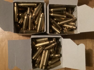 Ich verkaufe hier 150 308 Win Leerhülsen. Alle einmal mit geschossen, und nicht wiedergeladen! Leichte Gebrauchsspuren. Lieferung in originale Schüttpackungen zu je 50 Hülsen.