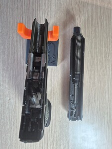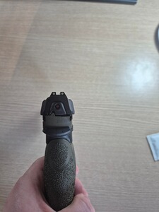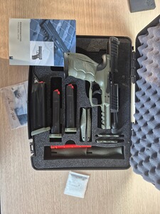 Die Waffe verfügt über die Möglichkeit mittels der mitgelieferten Griffstückteil das Griffvolumen anzupassen. Ebenfalls ist ein Orangener Laufeinsatz zu Training vorhanden. Auch ist bei der Beavertail und Jetfunnel mit enthalten. Ebenfalls für ist eine Adapterplatte zur Montage eine Rotpunktvisieres mit dabei (Schnittstelle Doctorsight). Insgesamt sind es drei Magazine, wobei zwei davon neuwertig sind.