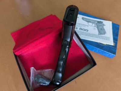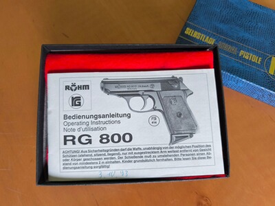aus Sammlungsverkleinerung biete ich eine sehr gepflegte, augenscheinlich unbeschossene RÖHM RG 800 mit der PTB 414 an.