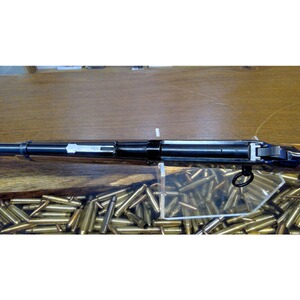 Unterhebelrepetierbüchse Winchester Modell 1894 im Kaliber .44 Rem Mag. in gutem Zustand. Die Waffe weißt kleinere Gerbauchsspuren am Schaft und Lauf auf, an der Ladeöffnung ist die Beschichtung abgeplatzt;