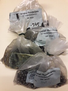 Biete Rundkugeln Kal. .345 8.75mm von H&N für Vorderlader Gewehre Pistolen im Kal. .35 oder .36 zum Kauf an. 1 Beutel enthält 200 Kugeln. Diese wiegen mit Beutel 820g und kosten 20,00 EUR. Sie kaufen das was auf dem Bild zu sehen ist.