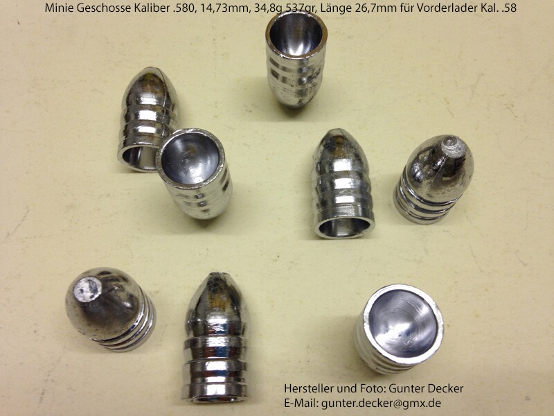 In weiteren Angeboten biete ich noch selbst gegossene Rundkugeln Kal. .305, .306, .307, .308, .311, .315, .320, .330, .350, .352, .354, .360, .362, .373, .375, .378, .380, .385, .390, .395, .400, .403, .410, .415, .429, .430, .435, .437 .440, .445, .448, .450, .451, .452, .454, .457, .462, .464, .470, .490, .495, .498, .500, .520, .530, .535, .540, .550, .570, .575, .595, .675, .682, .708, .732 und .735 für Vorderlader Kal. .31, .32, .33, .36, .38, .40, .41, .44, .45, .48, .50, .54, .56, .58, .60, .69, .72 und .75 an. Bei einem Kauf aus verschieden Angeboten kann der Versand natürlich zusammen erfolgen. Es gibt auch noch die von mir entwickelten Fette für Vorderlader Waffen - das Lube 104 BP, das Lube 105 ML-LT, das Lube 106 ML-HT sowie diverse Minie, Maxiball und Langgeschosse. Bitte beachten und kombinieren. Das spart Versandkosten.