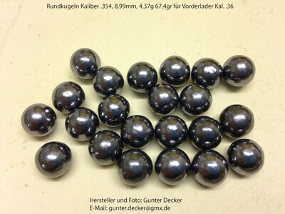 Biete Rundkugeln Kaliber . 350 8,89mm, .352 8,94mm, .354 8,99mm, .360 9,15mm und .362 9,19mm in Premium Qualität für Vorderlader Pistolen Gewehre Kal. .36 zum Kauf an. Details nachfolgend:
