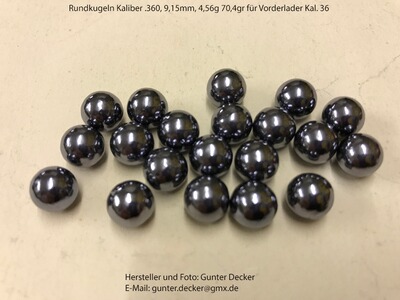 Rundkugeln Kaliber .350 .352 .354 .360 .362 Vorderlader Pistolen Gewehre Kal. .36