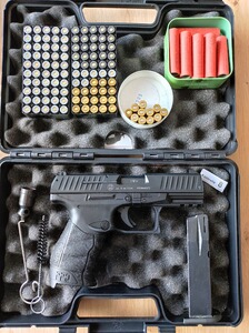 UMAREX WALTHER P22 9mm P.A.K. inkl. Ersatzmagazin, Abschussbecher Fidragon HolsterPrivatanbieterAb 18GutEUR 81,002 Gebote3 Tage 5 Std. - Seltene Rhöner SM 80 im Kal. 8 mm Knall/ PTB 267 mit Verpackung!